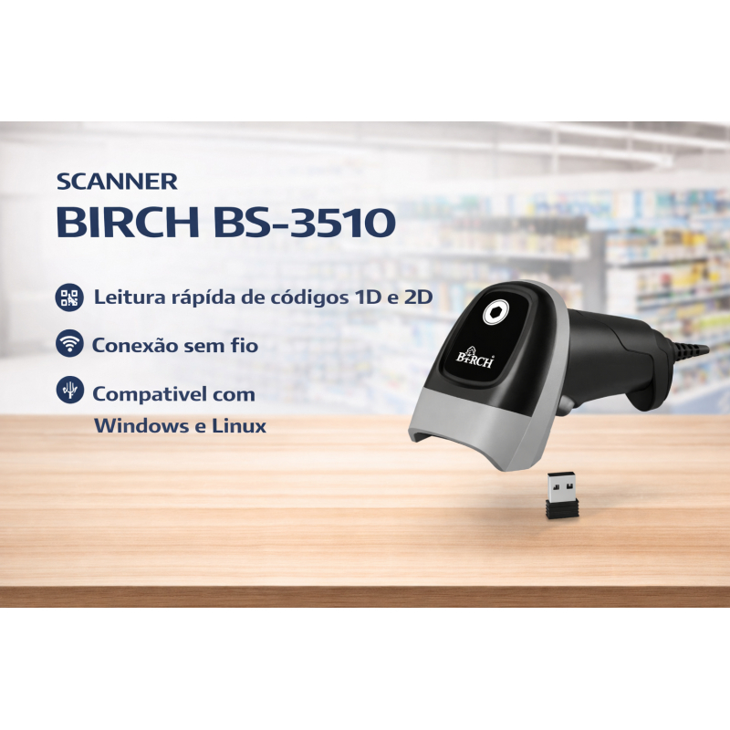O Birch BS-3510 é um leitor de códigos de barras de apresentação omnidirecional (de mesa), projetado para pontos de venda com alto volume de passagens, como supermercados e farmácias.