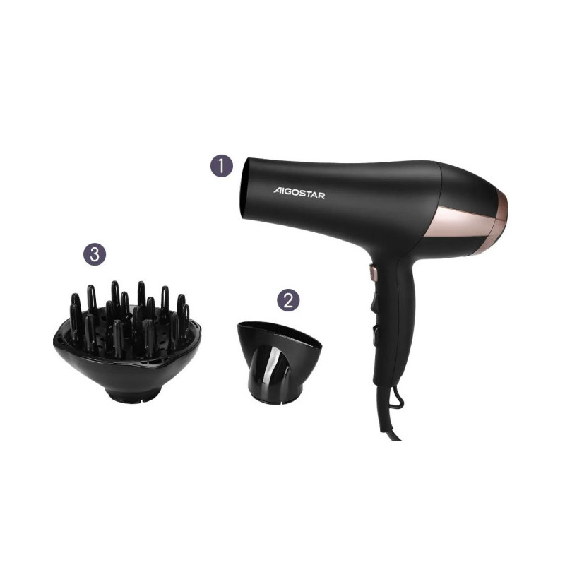 - Motor de corrente alternada, com alta potência 2400W, poderoso estilo de cabelo seco ao vento.