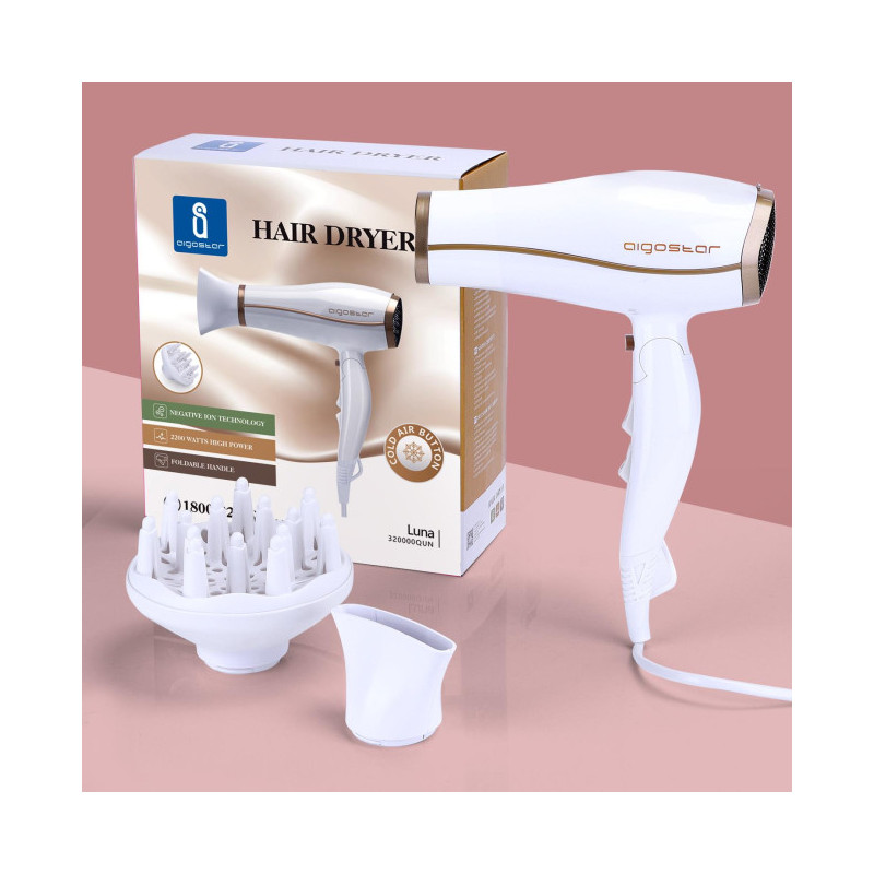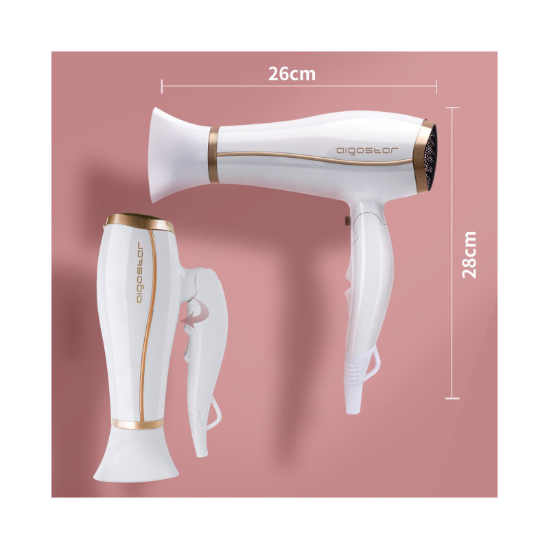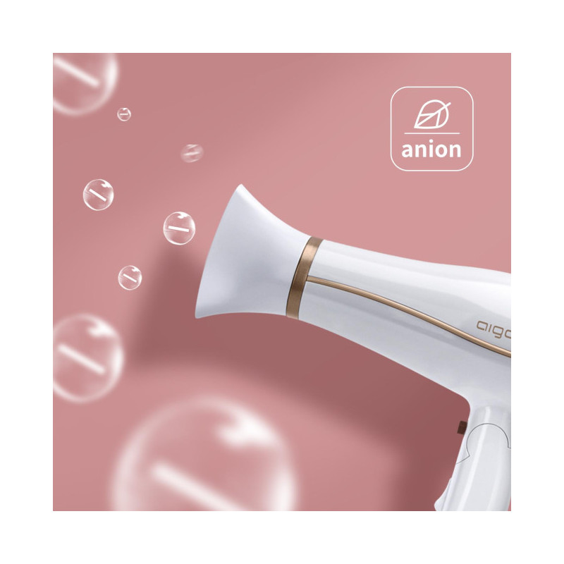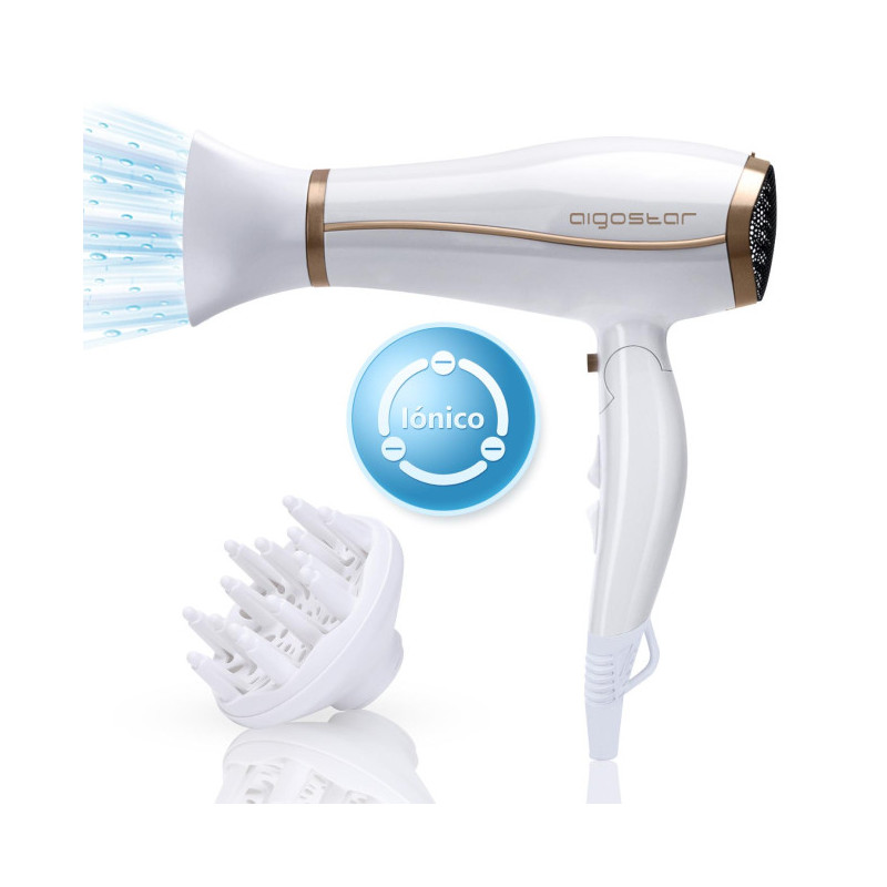 - Com tecnologia iônica (íons negativos), o secador Aigostar Fighter seca o cabelo mais rapidamente e evita o efeito de frizz no cabelo, melhorando seu alisamento e bloqueando a umidade rapidamente, secando o cabelo sem deixá-lo desidratado, melhorando sua suavidade e brilho naturais.