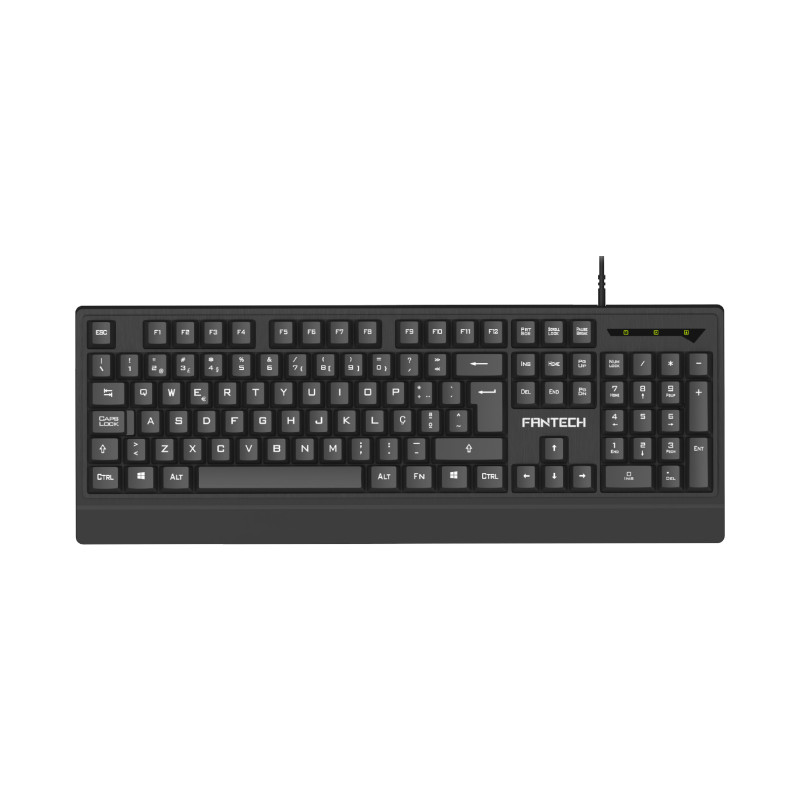 Teclado básico, ideal para a utilização do dia-a-dia. De design simples e funcional e conexão USB. Teclado com um design compacto com pressionamentos de tecla praticamente silenciosos.